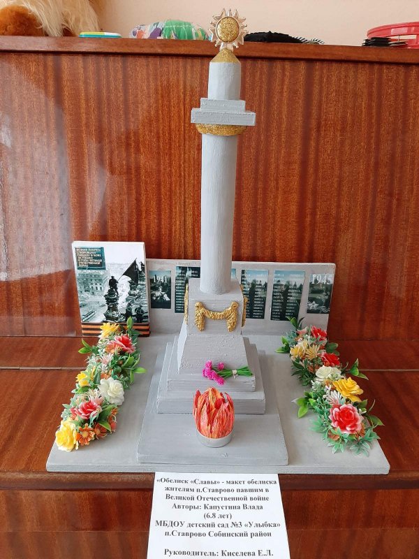 Воспитанница подготовительной группы Капустина Влада приняла участие в районном конкурсе "Зеркало природы". Её работа заняла 2 место в номинации "Зеленые островки памяти". Поздравляем! Желаем дальнейших творческих успехов!