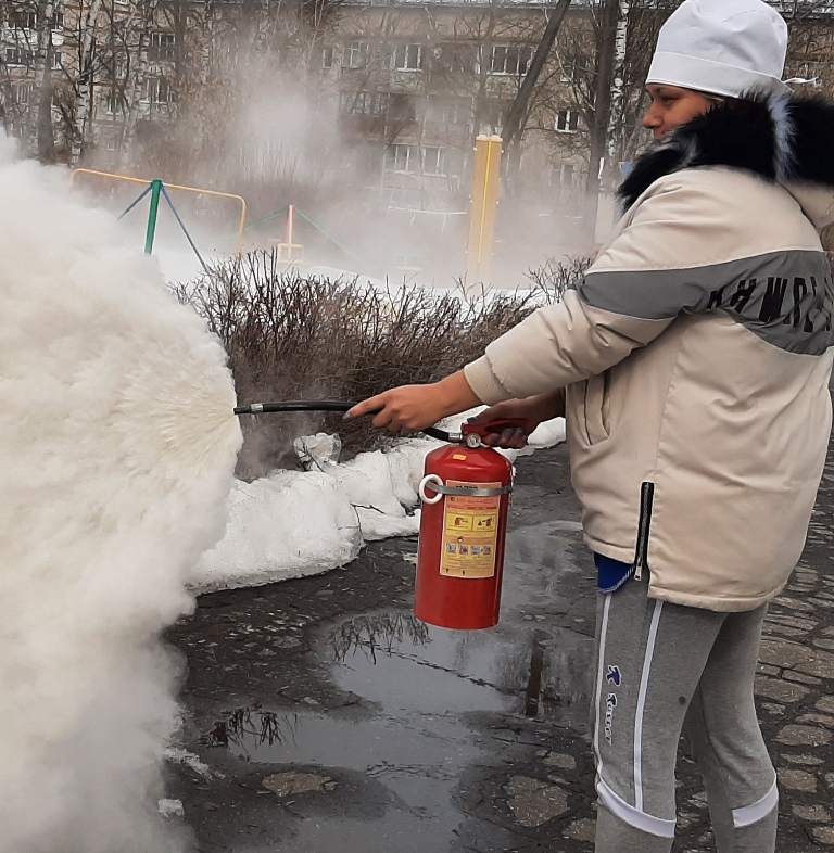 3.Тренировка с персоналом МБДОУ «Учимся пользоваться огнетушителем»