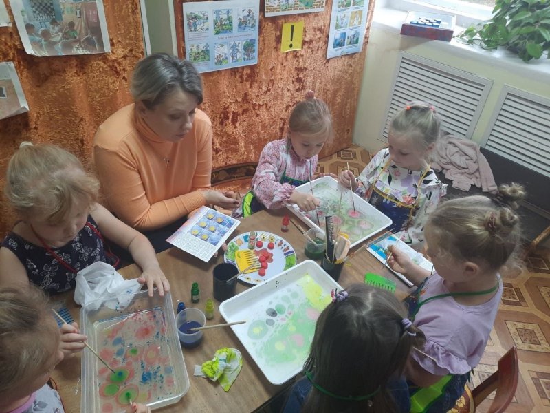 В нашем детском саду организована работа по дополнительном образованию кружок "Волшебные капли Эбру" , руководитель воспитатель Фадеева Марина Игоревна.