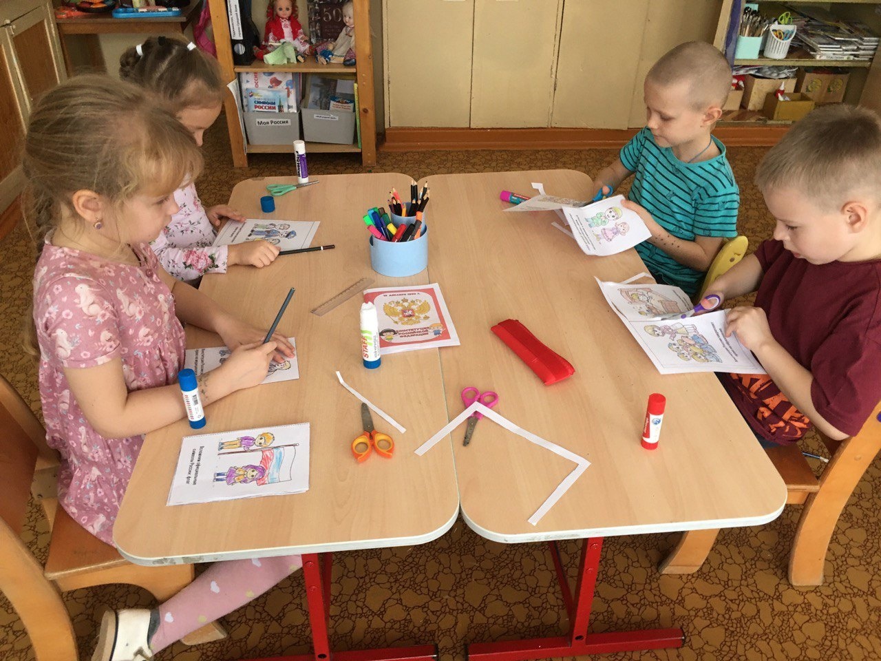 Ребята решили создать для своей группы Конституцию. Каждый ребёнок раскрасил страницу со значимым содержанием.