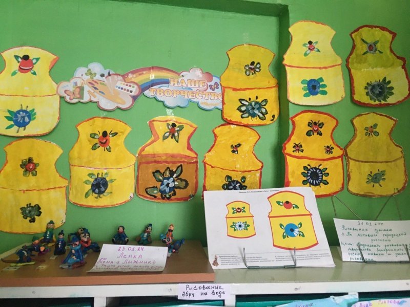 В рамках тематической недели « Мир предметов», на старше-подготовительной группе прошло занятие по рисованию на тему « По мотивам городецкой росписи». Ребята познакомились с элементами узоров городецкой росписи, учились передавать в рисунке элементы узоров. А также закрепляли знания о технических навыках и умениях в рисунке. Им было предложено расписать посуду красивыми городецкими цветами.