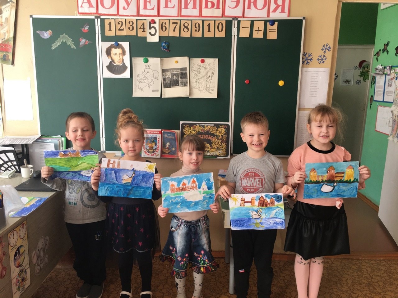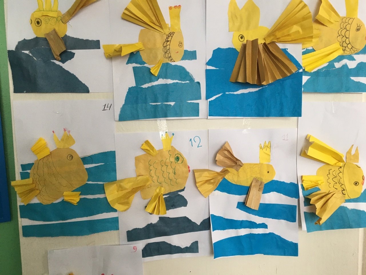 Ребята старше - подготовительной группы познакомились с произведениями Пушкина. Прошло занятие по рисованию на тему « Сказка о царе Салтане «. В своих работах изобразили сюжет сказки, героев произведения. Объёмная аппликация по сказке « Сказка о рыбаке и рыбке».