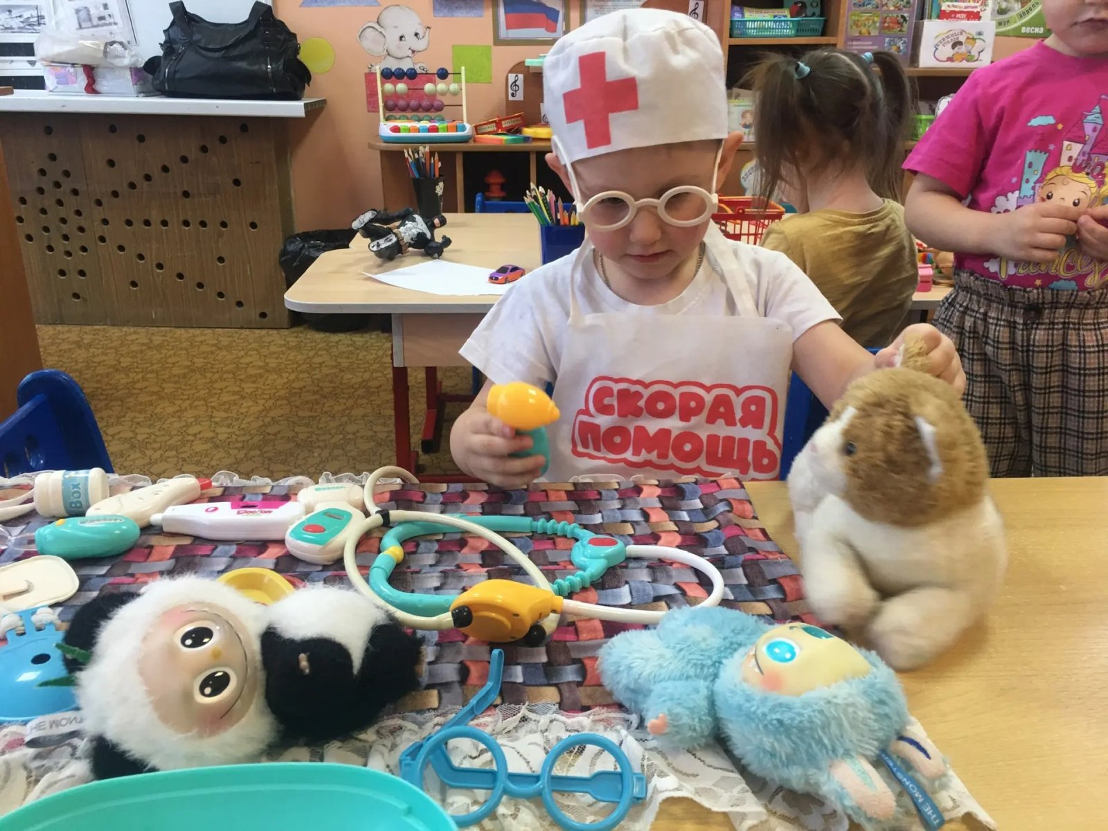 В рамках тематической недели « Все профессии важны», на младше-средней группе знакомство с профессиями прошло через разные сюжетно- ролевые игры. Одной из наиболее доступной формой ознакомления с профессиями является сюжетно-ролевая игра. В игре ребёнок берет на себя роль, в которой может использовать полученные новые знания о профессиях. В процессе игры имитируется сюжет, социальная среда и модели поведения людей. Таким образом, все эти достоинства игры помогают формировать у детей интерес к различным профессиям.